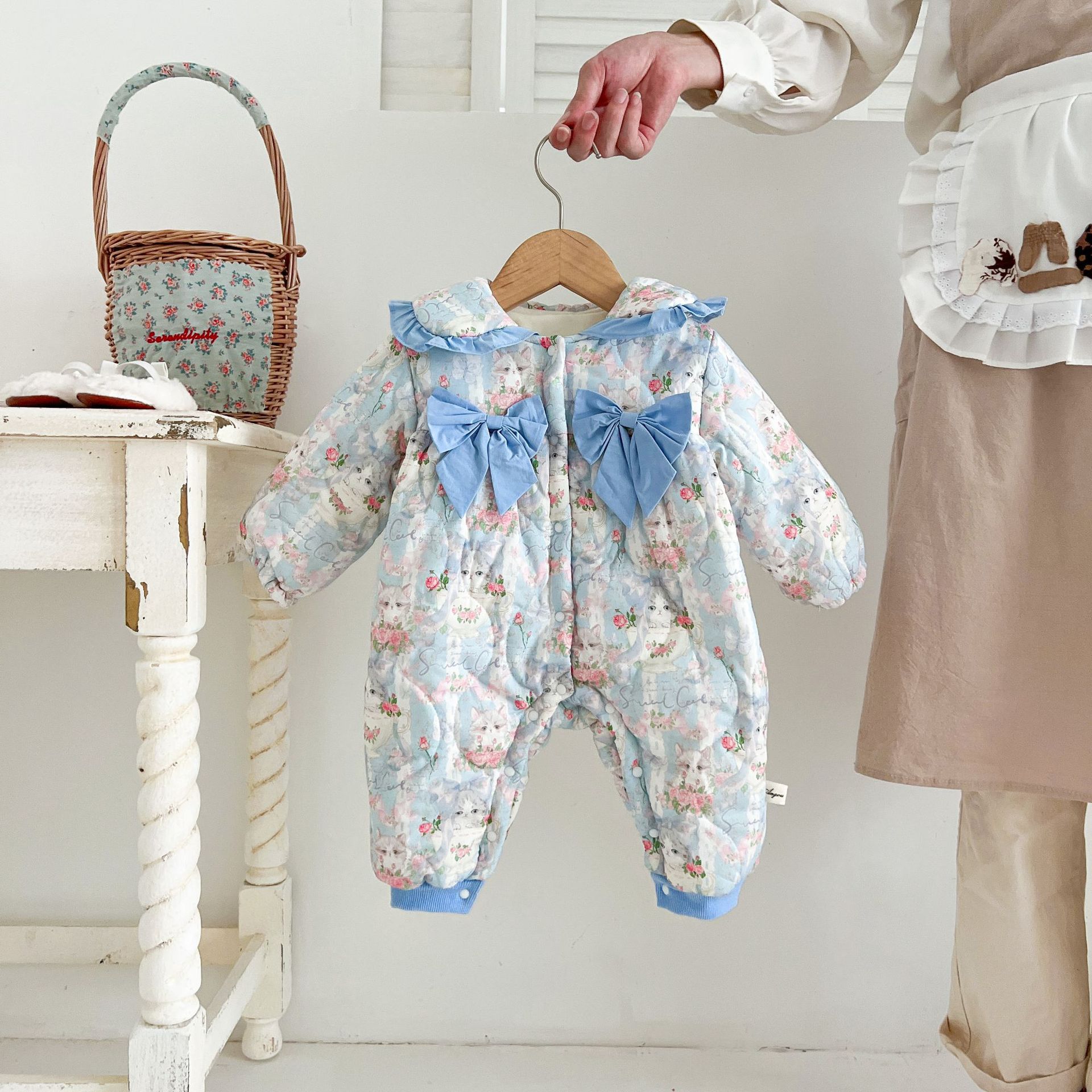 Baby Inkjet Fleece-lined Thickened Jumpsuit