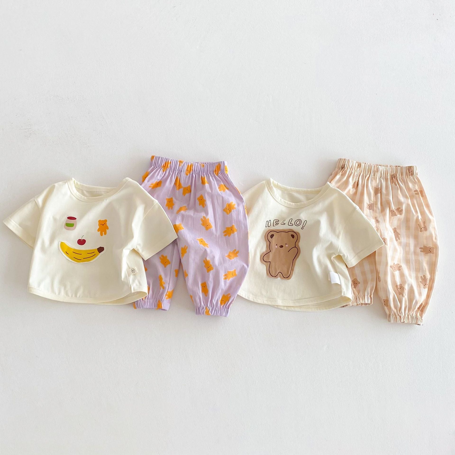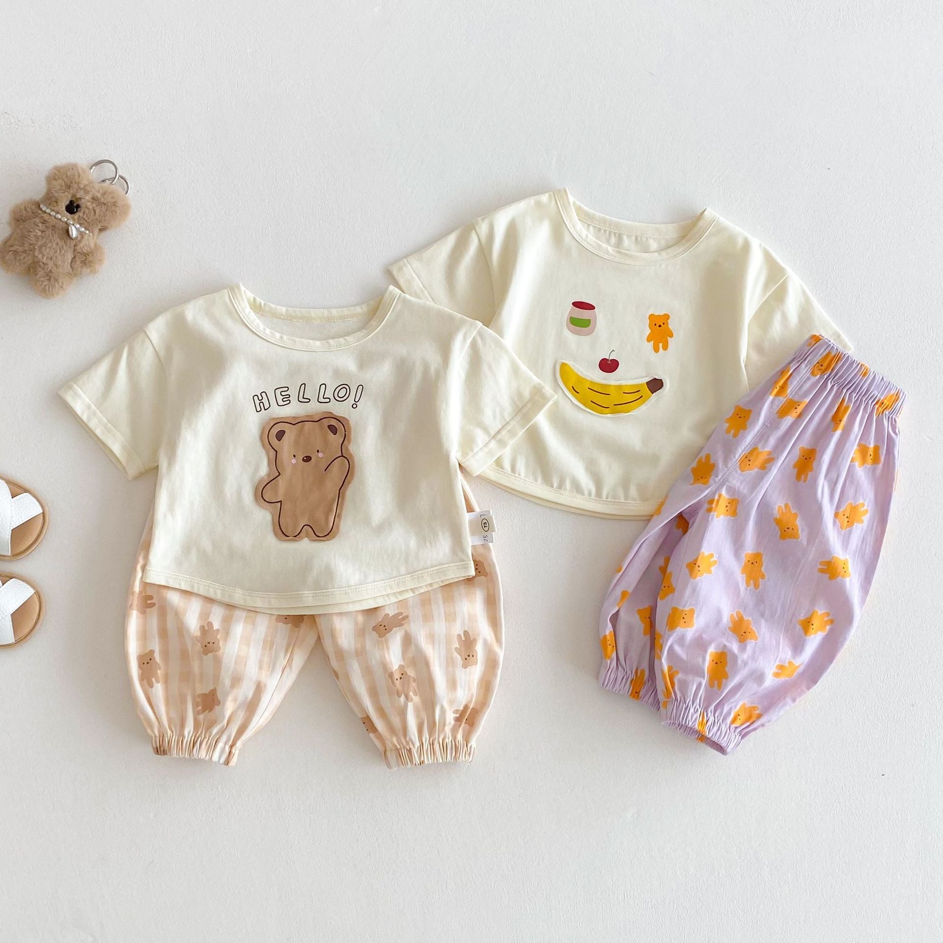 Children's Suit Bear T-shirt Patch Cartoon Casual Pants Two-piece Set