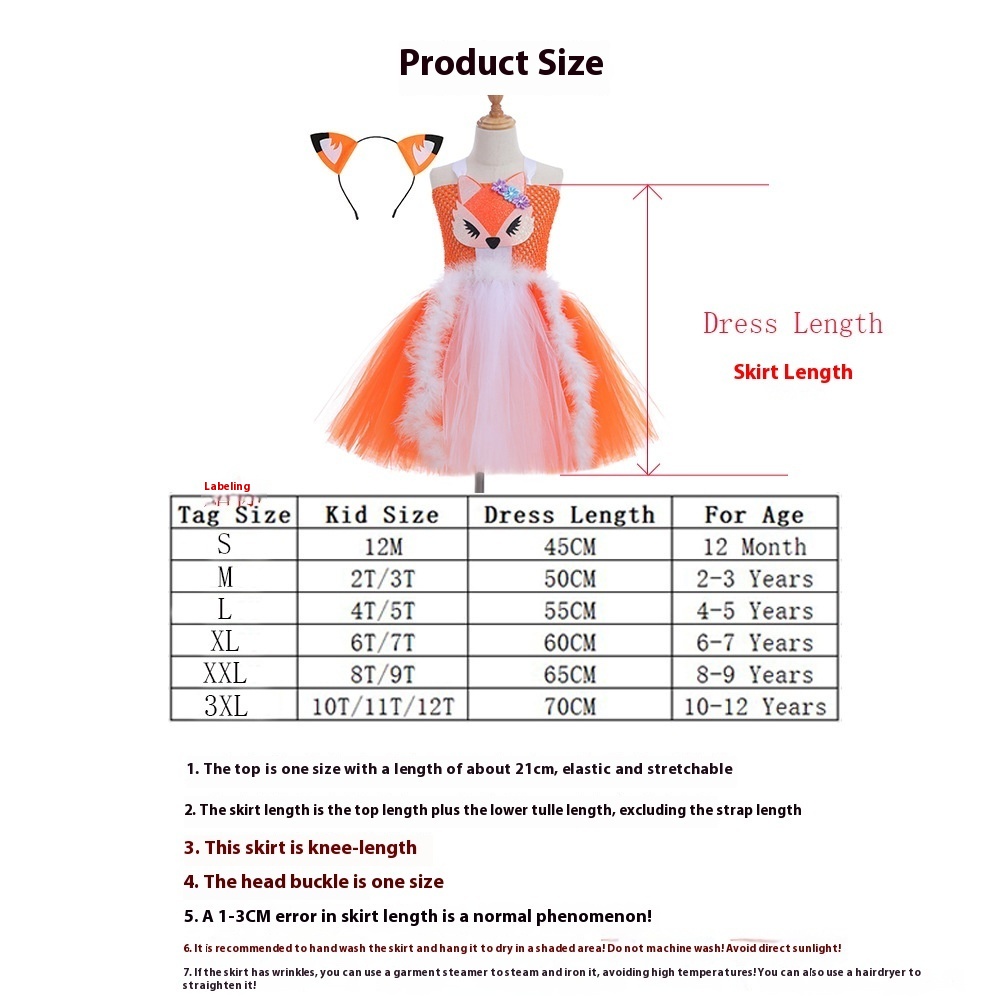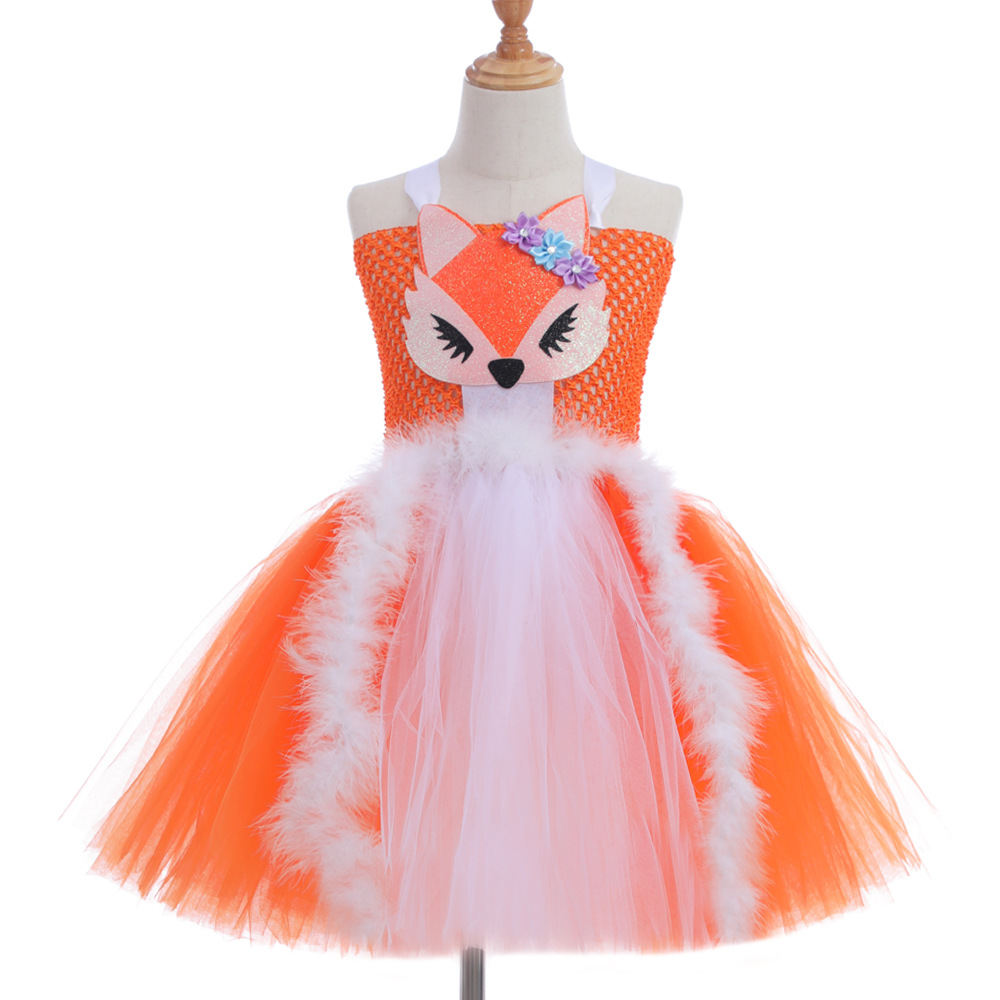 Orange Fox Role Cosplay Clothes Girls Mesh Bubble Skirt