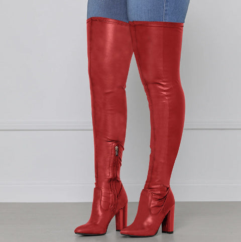 Side Zipper High Chunky Heel Plus Size Below The Knee Long Boots Female