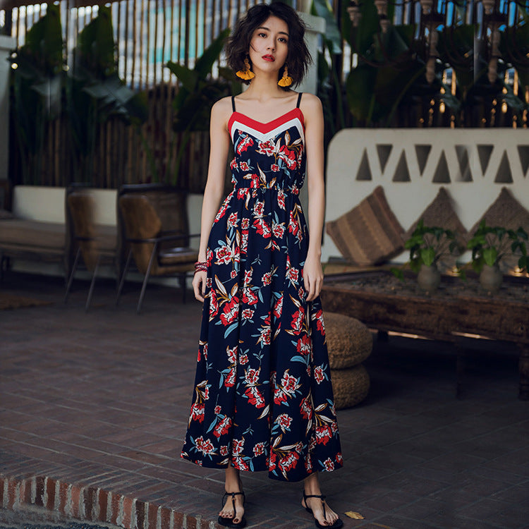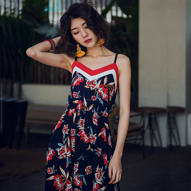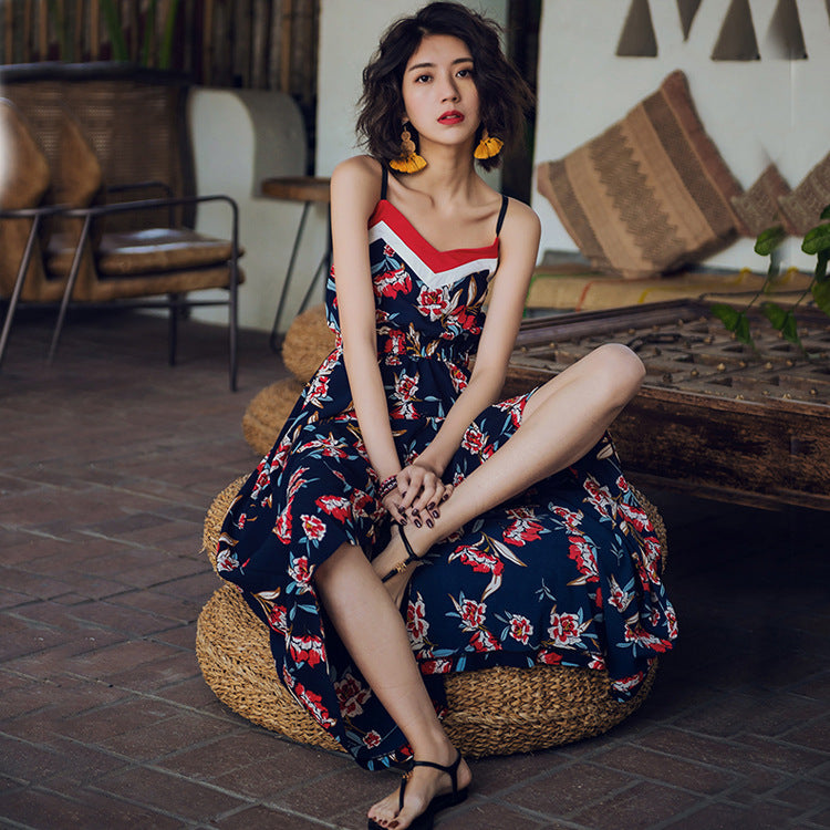 Slim Thai Style Seaside Suspender Dress
