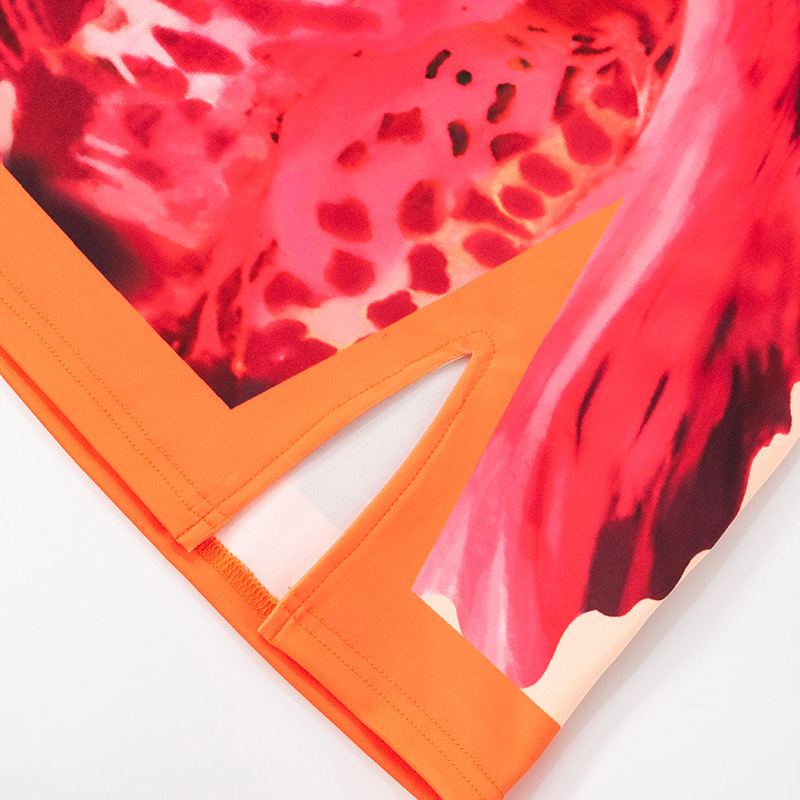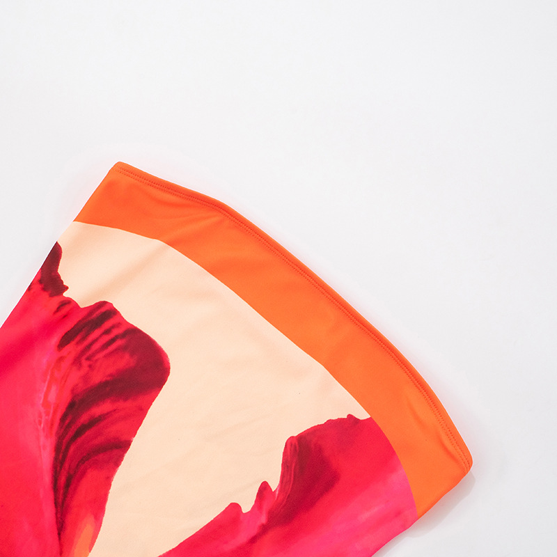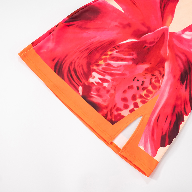 Women's Elegant Floral Print Tube Top Slit Sheath Skirt Dress